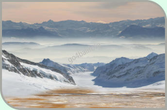 wie kommt der Aletschgletscher auf der Jungfrau vor das Panorama der schweizer Alpen mit der heissen Erde Islands ins ewige Eis?